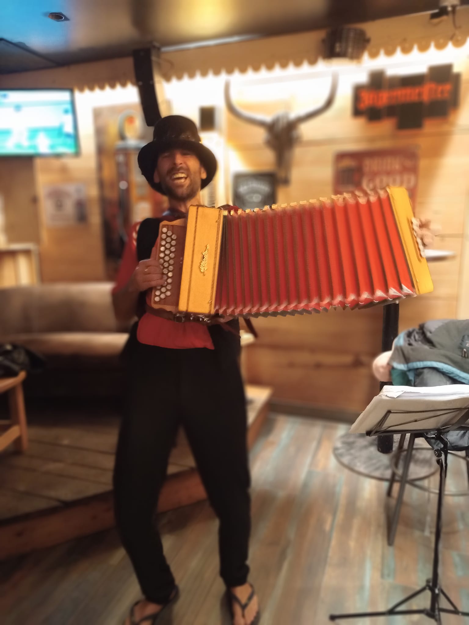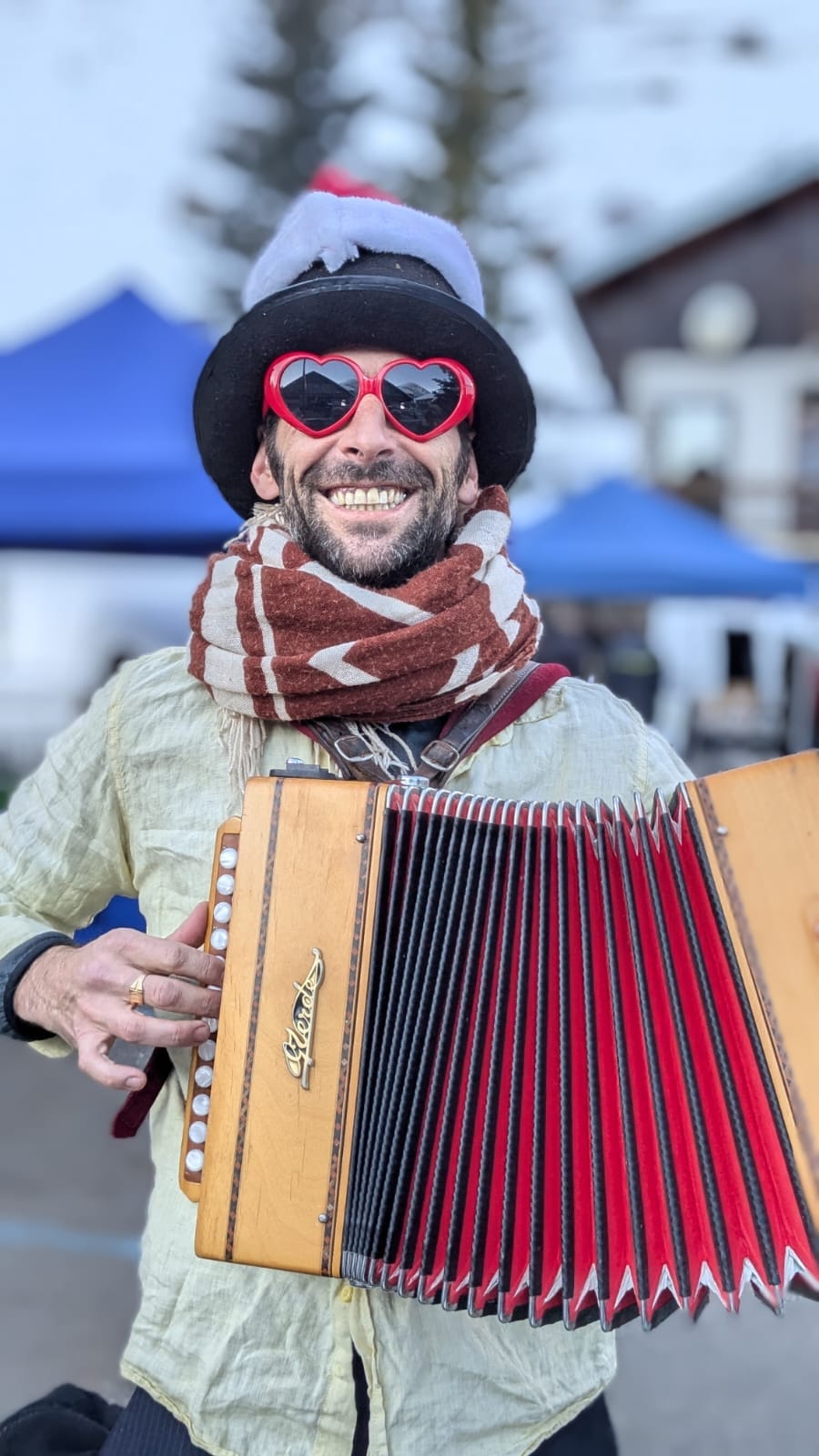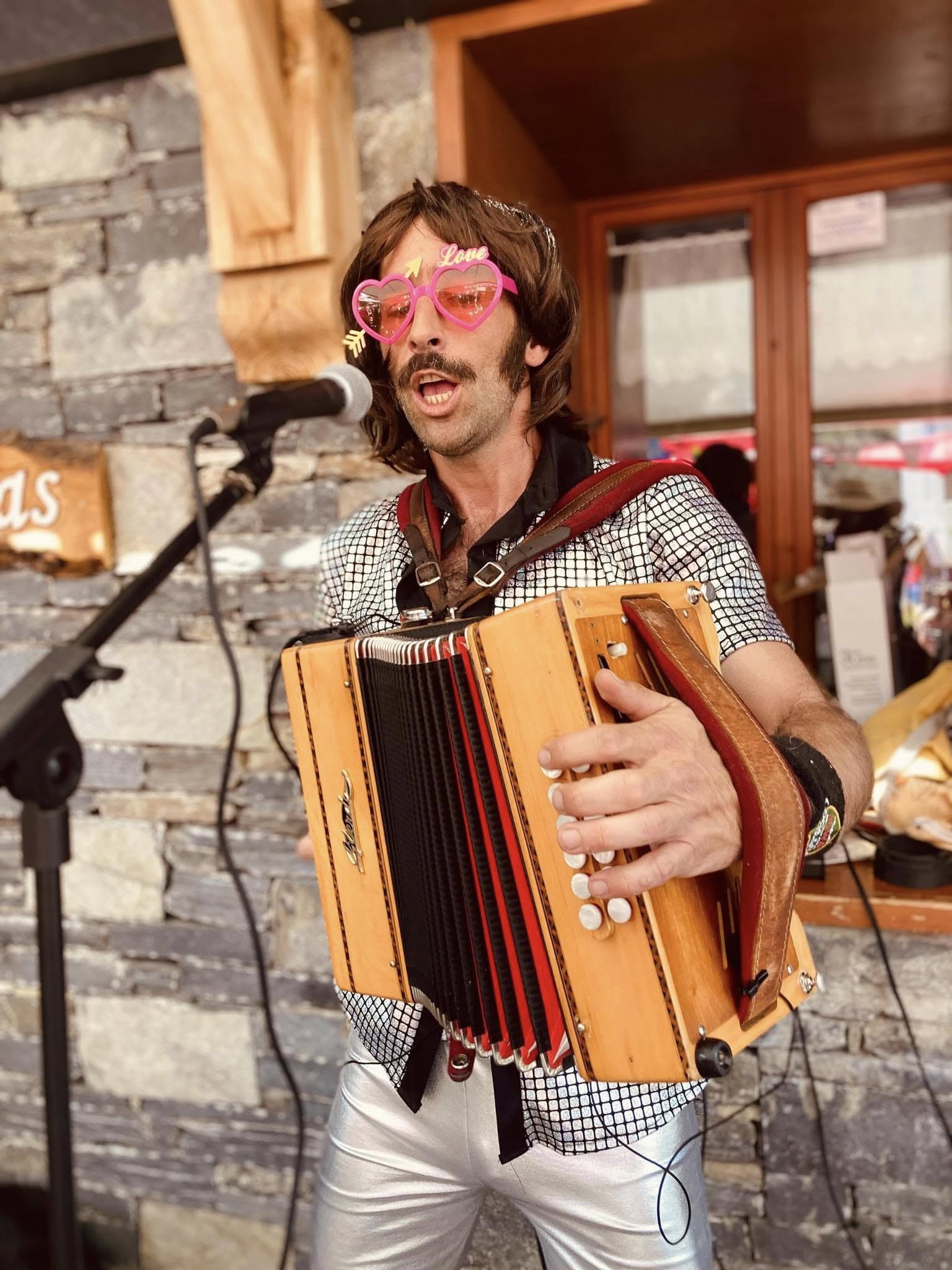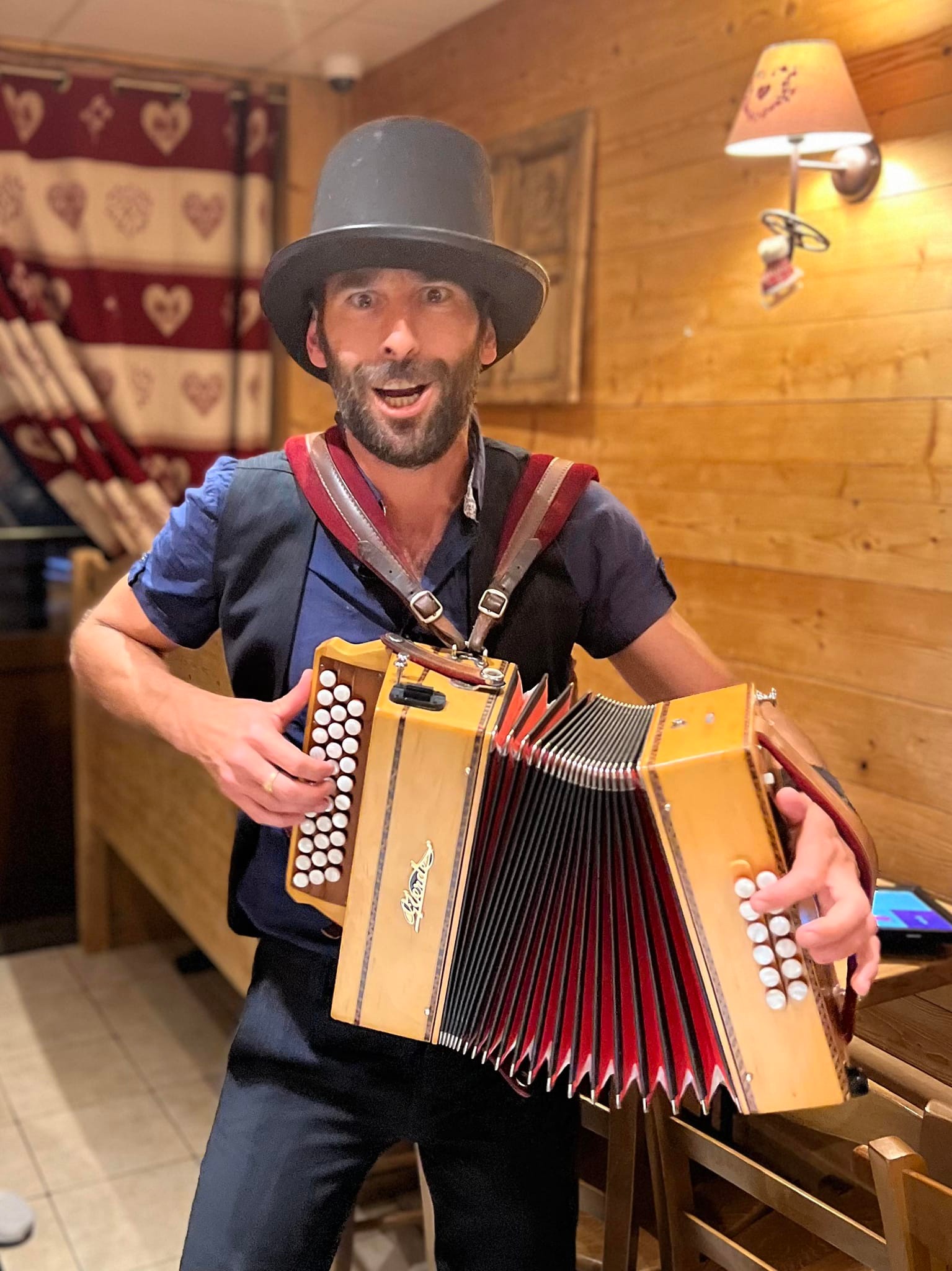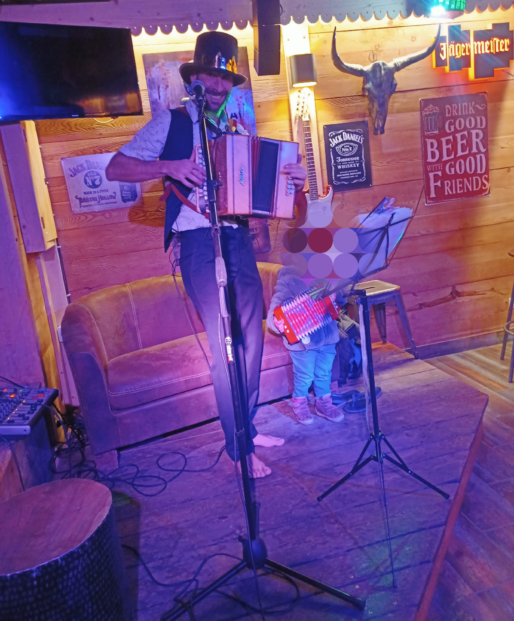 Un accordéon diatonique accompagné de son chanteur et musicien Antoine.