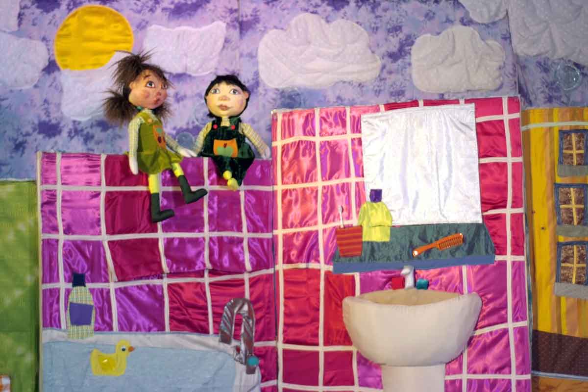 Son premier voyage la conduit dans la salle de bain, où elle va faire la connaissance des deux enfants de la maison, Tom et Ella. C'est amusant le bain, c'est plein de bulles et de chansons.